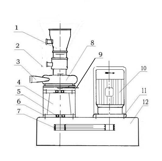 1-粉料進(jìn)料口;2-液體進(jìn)液口;3-出料口;4-主機支架;5-主機底盤;