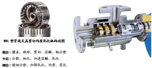 | (一)WRL管線式高剪切分散乳化機的優(yōu)點: 1.處理量大,適合工業(yè)化在線連續(xù)生產; 2.粒徑分布范圍窄,勻度高; 3.節(jié)約能耗、省時、高效; 4.噪音低、運轉平穩(wěn); 5.消除批次間生產的品質差異; 6.無死角,物料100%通過分散剪切; 7.具有短距離、低揚程輸送功能; 8.使用簡單,維修方便; 9.可實現(xiàn)自動化控制。 |