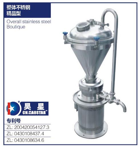 Hao Star Vertical enclosed Colloid Mill colloidmill-jiaotimo with vertical motor, motor-piece body and coaxial structure is also known as Siamese colloid mill, and take the whole closed loop configuration.